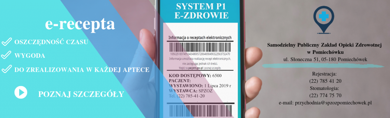 Recepta elektroniczna (e-recepta) to kolejny etap cyfryzacji ochrony zdrowia w Polsce. Od stycznia 2019 r. wszystkie apteki na terenie kraju mają możliwość jak również obowiązek realizacji recept elektronicznych dzięki dostępowi do platformy e-zdrowie. Obecnie w SPZOZ w Pomiechówku recepty są już wystawiane w formie elektronicznej.
