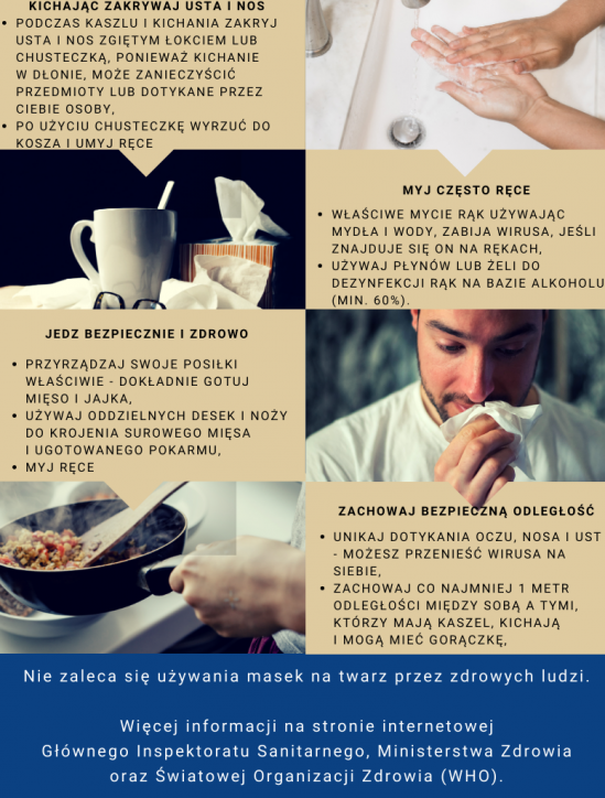 Zgodnie z komunikatem Głównego Inspektora Sanitarnego z dnia 24.02.2020 r., osoby powracające z Chin lub Włoch (w szczególności z regionów: Lombardia, Wenecja Euganejska, Piemont, Emilia Romania, Lacjum), które: